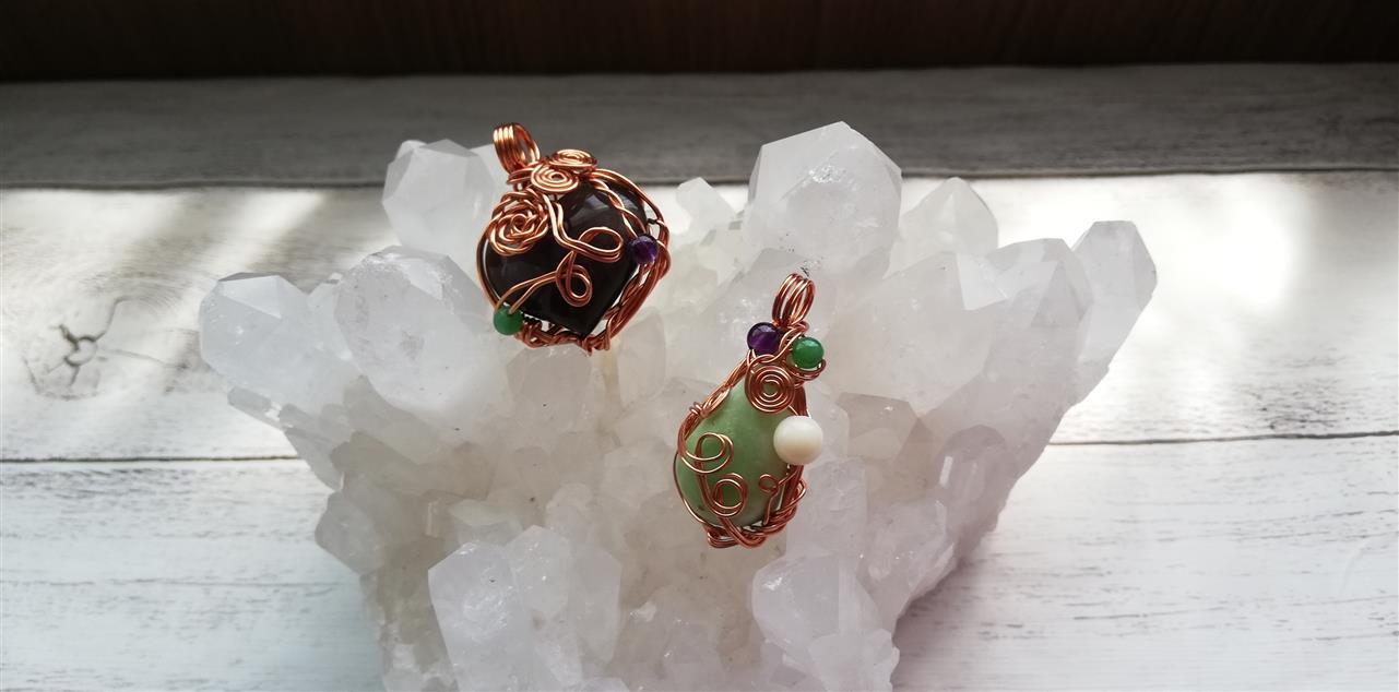 大きめの天然石をワイヤーワークで包んだアクセサリーです。